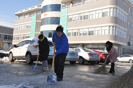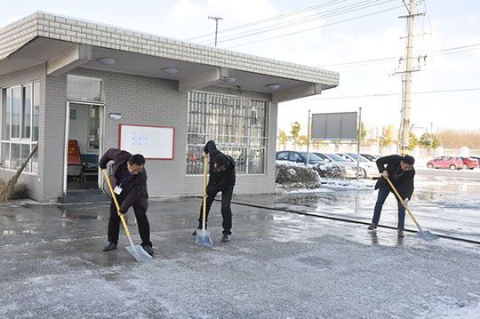 26日一大早,三圣高管團(tuán)隊(duì)在馮圣君董事長的帶領(lǐng)之下,操起鐵鍬,揮舞掃帚,分區(qū)分片,親自清除廠區(qū)主干道上的結(jié)冰積雪。為了安全與暢通,現(xiàn)場(chǎng)熱火朝天。
