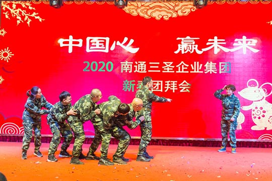 為了弘揚體育健身精神,本次年會上凸顯對“體育強則中國強”的高度關(guān)注:曾參加今年“南通國際馬拉松”賽事的三圣健將們,高舉國旗、彩球,插上雙翼、身披戰(zhàn)袍,用自己的特殊方式,威風(fēng)凜凜地依次入場;彩虹跑小組成員也自信亮相,搞怪機靈的鼠大哥帶著鼠弟鼠妹接過豬師兄的接力棒開啟了2020新大門,合唱合舞燃爆現(xiàn)場。