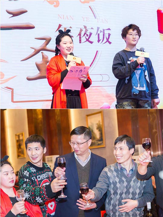 一年一度的三圣年夜飯,集團所有員工歡聚一堂,公司準備豐盛宴席,答謝不辭辛苦的員工、熱心支持的合作伙伴。席間,大家暢所欲言,互敬美酒,互道祝福,溫馨的大家庭其樂融融。
