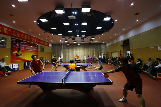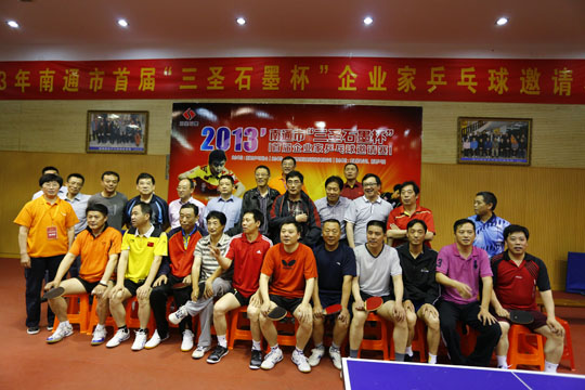 5月18日下午1點(diǎn)鐘,初夏的南通籠罩在蒙蒙細(xì)雨之中,在市供電公司的乒乓球館里,人頭攢動(dòng),人聲鼎沸,2013年南通市首屆“三圣石墨杯”企業(yè)家乒乓球邀請(qǐng)賽在這里隆重舉辦。比賽現(xiàn)場(chǎng)集聚了相當(dāng)實(shí)力的16企業(yè)乒乓球精英,更有一批通城頂級(jí)教練、陪練現(xiàn)身賽場(chǎng),組成陣容強(qiáng)大的“后援團(tuán)”,場(chǎng)面之壯觀、競(jìng)爭之激烈成為南通乒乓球賽史的又一新標(biāo)桿。